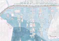 第六階段:對規(guī)劃場地內(nèi)的靈活系統(tǒng)進行拓展,對兩部分區(qū)域進行重新連接,為項目和規(guī)劃場地創(chuàng)建可交互的雙重價值。沿岸區(qū)域的城市性能現(xiàn)在由水元素控制,而不再是通常狀態(tài)下的土地。