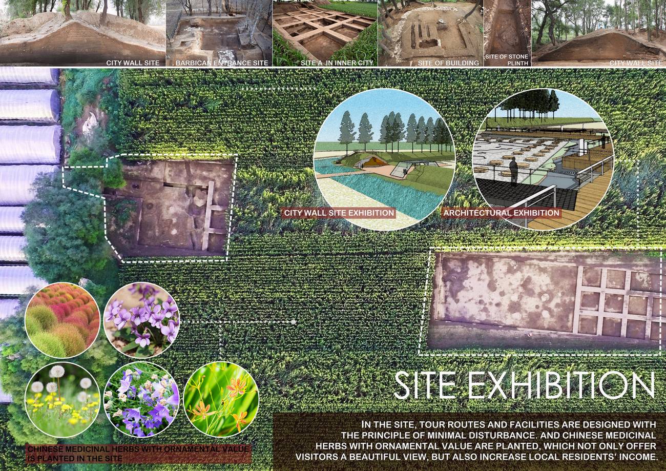 在遺址范圍內(nèi),出于保護(hù)的角度,采用鄉(xiāng)土地被種植的分區(qū)設(shè)計(jì)手法,結(jié)合微地形的設(shè)計(jì),標(biāo)記遺址的不同組成部分、展示遺址的重要節(jié)點(diǎn)。公園內(nèi)廣泛種植具有經(jīng)濟(jì)價(jià)值的地被植物和各色中草藥,村民對其進(jìn)行很好的管理以保證作物的收成,同時(shí)為公園提供整潔有序的視覺效果。