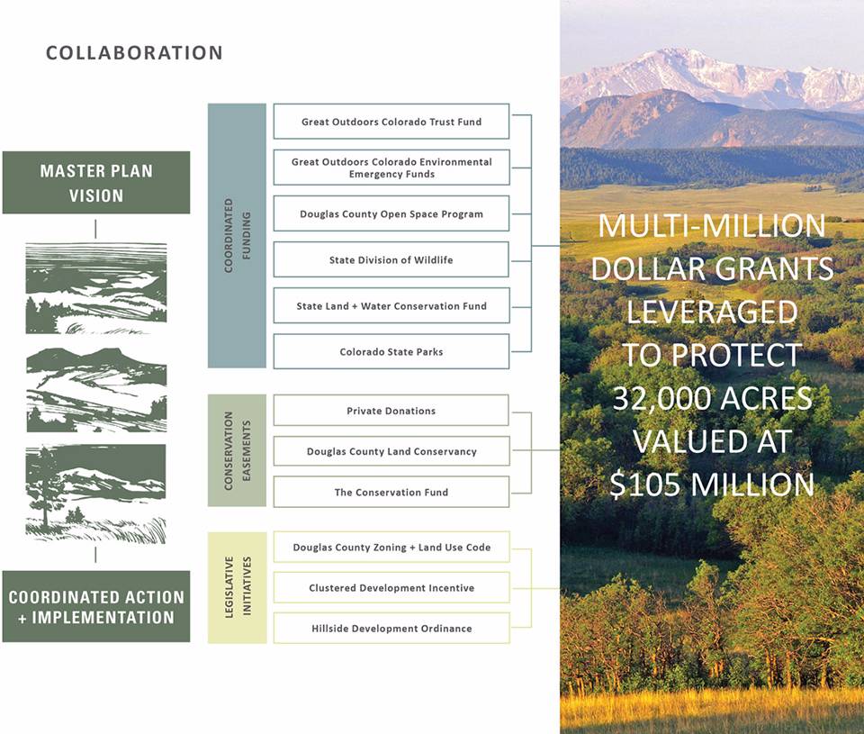 ▲在將“遠(yuǎn)景規(guī)劃”變?yōu)楝F(xiàn)實(shí)的過程中,土地交易方面的復(fù)雜問題也在不斷增加。規(guī)劃團(tuán)隊(duì)創(chuàng)造性地將嚴(yán)謹(jǐn)?shù)姆治龊鸵?guī)劃方法與多方協(xié)作相結(jié)合,致力于保護(hù)科羅拉多州的開放空間。
