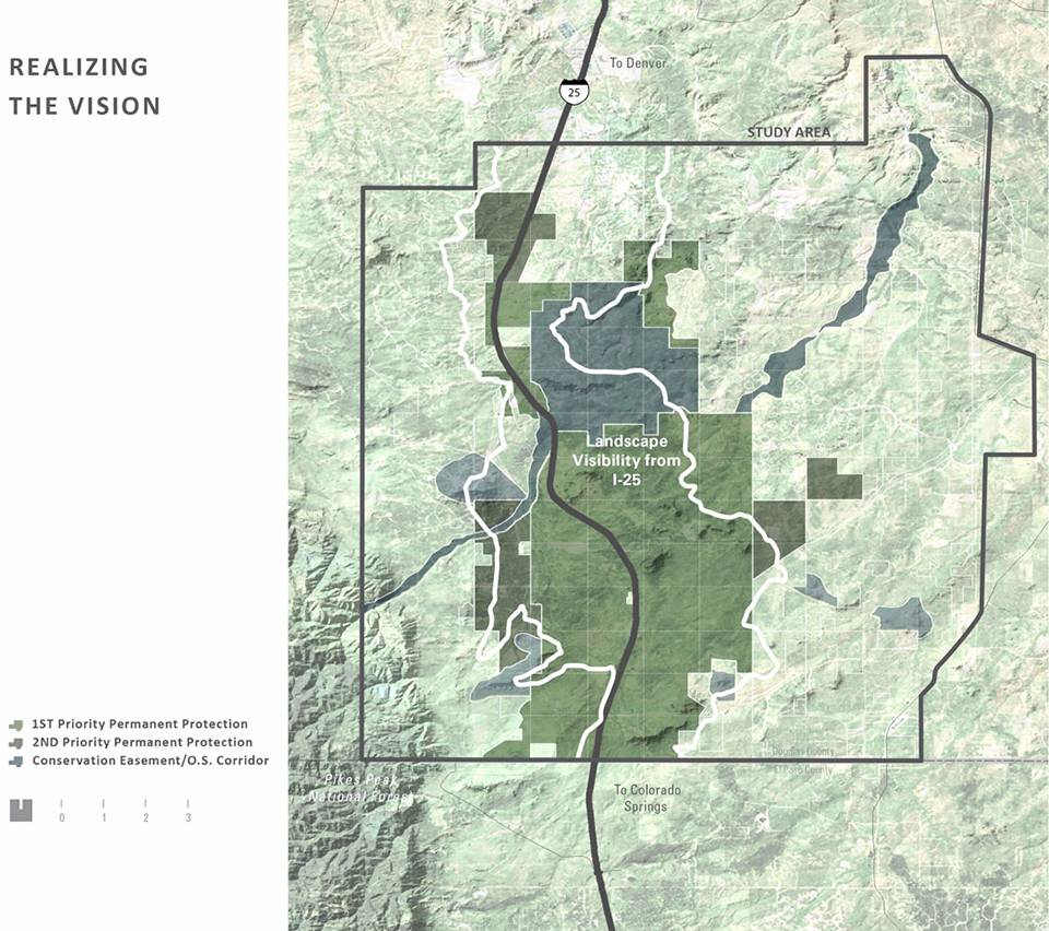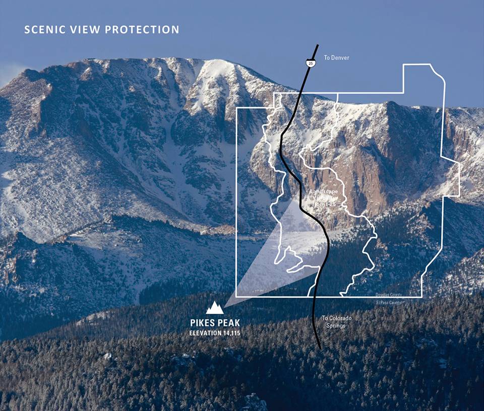 ▲風(fēng)景保護(hù)?;趯?duì)景觀價(jià)值的分析,規(guī)劃保留了從大草原到山峰的大規(guī)模過渡景觀,其中包括與國(guó)家森林公園相鄰的派克峰。