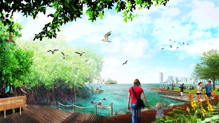 森林城市的濱海生態(tài)系統(tǒng)不僅直接提供了無數(shù)的食物網(wǎng),還能減弱海浪沖擊來保護(hù)海岸免受風(fēng)暴、巨浪和侵蝕。作為社區(qū)推廣的一部分,項(xiàng)目將為本地居民提供培訓(xùn),讓他們成為大自然的向?qū)б约暗貐^(qū)生態(tài)的專家。
