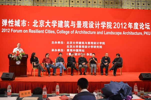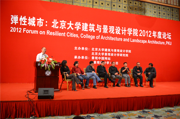 為推動中國景觀設(shè)計(jì)行業(yè)的發(fā)展,給社會各界相關(guān)人士提供國際化的景觀設(shè)計(jì)行業(yè)學(xué)術(shù)探討及交流平臺," 彈性城市——北京大學(xué)建筑與景觀設(shè)計(jì)學(xué)院2012年度論壇 " 于10月14日在北京大學(xué)英杰交流中心陽光大廳圓滿舉辦。本次大會由北京大學(xué)建筑與景觀設(shè)計(jì)學(xué)院和北京大學(xué)景觀設(shè)計(jì)學(xué)研究院主辦,景觀中國網(wǎng)站和《景觀設(shè)計(jì)學(xué)》雜志承辦。" 彈性城市 " 論壇主要分為三個部分:上午進(jìn)行大會主旨報(bào)告的演講,下午進(jìn)行主題發(fā)言以及企業(yè)與高校嘉賓對話。主旨報(bào)告環(huán)節(jié)由北京大學(xué)建筑與景觀設(shè)計(jì)學(xué)院院長俞孔堅(jiān)和北京大學(xué)景觀設(shè)計(jì)學(xué)研究院副院長李迪華主持;主題發(fā)言環(huán)節(jié)由北京大學(xué)建筑與景觀設(shè)計(jì)學(xué)院副教授王志芳女士主持。企業(yè)與高校嘉賓對話環(huán)節(jié)由北京大學(xué)景觀設(shè)計(jì)學(xué)研究院副院長李迪華主持【詳細(xì)】