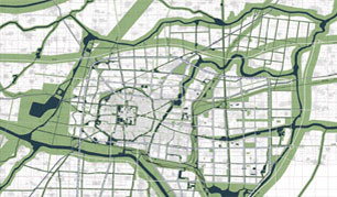 “海綿城市”的構(gòu)建在這一尺度上重點是研究水系統(tǒng)在區(qū)域或流域中的空間格局,即進行水生態(tài)安全格局分析,并將水生態(tài)安全格局落實在土地利用總體規(guī)劃和城市總體規(guī)劃中,成為區(qū)域的生態(tài)基礎(chǔ)設施。在方法上, 可借助景觀安全格局方法,判別對于水源保護、 洪澇調(diào)蓄、生物多樣性保護、水質(zhì)管理等功能至關(guān)重要的景觀要素及其空間位置,圍繞生態(tài)系統(tǒng)服務構(gòu)建綜合水安全格局。