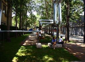 除了岐江公園,在北京“聲名赫赫”的798藝術(shù)區(qū),也是工業(yè)遺產(chǎn)地復(fù)興的典型。作為上個(gè)世紀(jì)50年代建設(shè)的具有典型包豪斯風(fēng)格的一家大型國(guó)有工廠,當(dāng)工廠的生產(chǎn)停止以后,設(shè)計(jì)、出版、展示、演出、藝術(shù)家工作室等一批全新的創(chuàng)意產(chǎn)業(yè)陸續(xù)入駐。在對(duì)原有的歷史文化遺留進(jìn)行保護(hù)的前提下,原有的工業(yè)廠房被重新定義、設(shè)計(jì)和改造,帶來(lái)了人們對(duì)建筑和生活方式的創(chuàng)造性理解……