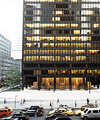 基座處理密斯在其發(fā)表的《兩座玻璃摩天樓》一文中說道:“用玻璃做外墻,我們就能看到新結(jié)構(gòu)的原則”隨后他又說道:“在做玻璃模型時,我發(fā)現(xiàn)主要效果是映像的變化,而不是一般建筑物普通的光影變化效果”。在前一段話中密斯表明了利用玻璃的透明性揭示結(jié)構(gòu)真實性的想法,而后一段話則指向玻璃表皮獨特的反射(映像)效果。這其中包含了新的矛盾,透明與反射的矛盾。它們一者指向建筑內(nèi)部,另一者指向建筑外部。 |