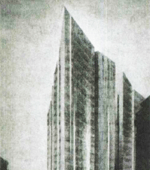 1928~1929年——兩座玻璃辦公樓:不再透明的體積現(xiàn)在,密斯對于多層或高層建筑的外部表達問題也交出了答卷,先前在玻璃摩天樓中的種種欲望在這里被澄清,有的被刪節(jié),有的被純化,在密斯日后的高層建筑作品中,我們會發(fā)現(xiàn)雖然他仍然不斷使用大面積玻璃表皮,然而這些建筑卻越來越難以讓我們感覺到它們的透明性。如果作一個比較,密斯晚年建成的那些玻璃摩天樓,同1922年的玻璃摩天樓模型相比它們更像是金屬表皮的建筑,渾身遍布著金屬的外露構(gòu)件,暗灰色的玻璃只留下了深重的反射效果和厚重的體積感,這種截然的反差在密斯1928年的這兩幅表現(xiàn)畫中已經(jīng)露出了端倪。 |