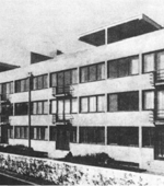1923年——兩座混凝土建筑:追問結(jié)構(gòu)1923年初,密斯的一幅建筑表現(xiàn)作品出現(xiàn)在人們的視野中,這是一座四四方方的多層鋼筋混凝土辦公樓方案的透視圖。我們注意到一系列關(guān)鍵詞的變化:高層——多層、玻璃——鋼筋混凝土、曲線或者棱柱——方形。新發(fā)表的《辦公樓建筑護》一文中再也不提關(guān)于玻璃的反射或者透射效果,甚至關(guān)于建筑外觀的一般性描述也消失無蹤,代之以“結(jié)構(gòu)”、“功能”等字眼和一大串框架結(jié)構(gòu)的數(shù)據(jù),甚至這篇文章的標(biāo)題上“建筑”的定語也由材料類型變?yōu)榱斯δ茴愋汀?/p> |