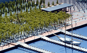 對(duì)基地文脈的體現(xiàn) 施瓦茨這種平面構(gòu)圖的系列化和秩序感,簡(jiǎn)化與精練,在形式上與極簡(jiǎn)主義具有相似的面孔。但是深入了解之后,她的平面常常具有與基址文脈相關(guān)的含義。使景觀不僅可視,還使它因具有意義而充滿(mǎn)生機(jī)。例如:費(fèi)姆國(guó)際游泳館的設(shè)計(jì)方案(見(jiàn)彩圖),條形平面使人聯(lián)想到游泳池中的賽道… |