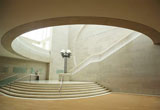 國家美術(shù)館東館所占有的地形是使建筑師們頗難處理的不規(guī)則四邊形。為了使這座建筑物能夠同周圍環(huán)境構(gòu)成高度諧調(diào)的景色,貝聿銘創(chuàng)造性地把不同高度,不同形狀的平臺、樓梯、斜坡和廊柱交錯相連,給人以變幻莫測的感覺。這座建筑被譽為“現(xiàn)代藝術(shù)與建筑充滿創(chuàng)意的結(jié)合”。建筑的頂部直沖天空,幾何圖形的玻璃充分吸收陽光,像一個現(xiàn)代的教堂。貝聿銘說,這個建筑應(yīng)該具有一種紀(jì)念碑似的氣度。采取了寶石切割一樣的手法,做出這種尖角,因為那種干練的線條是這個建筑的精髓,任何圓鈍的形狀會減損這種氣勢。[詳細] |