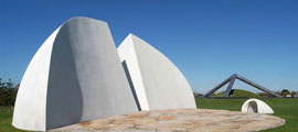 (1)日本廣島,和平公園,原子彈爆炸死難者紀(jì)念碑和拱形橋梁。