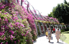 應(yīng)用葡萄、紫藤、金銀花等具有纏繞性能和蔓性月季、木香等長蔓性藤本,在略加牽引扶持下,攀爬在園林花架、簡易棚架及與墻面保持一定距離的垂直支架上,點綴裝飾小游園和庭院等。