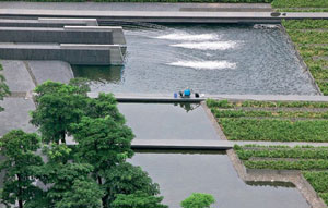 因此,我呼喚完全的水的回歸:水不是“H2O”,水是活的生態(tài)系統(tǒng),水的真實(shí)性和完整性不在于它是否有多純凈,而在于與土地、與生物的聯(lián)系;在于其系統(tǒng)的連續(xù)性和完整性。水的價(jià)值也必須回到完全的生態(tài)系統(tǒng)服務(wù)上來(lái)理解和評(píng)價(jià)。水環(huán)境的治理必須回到對(duì)水作為生命系統(tǒng)的完整性的恢復(fù)上來(lái),包括水系統(tǒng)的生產(chǎn)服務(wù)、調(diào)節(jié)服務(wù)、生命承載服務(wù)和文化服務(wù)。因此,水景觀(guān)的設(shè)計(jì)就是要讓水回歸生命、回歸完全、回歸土地。