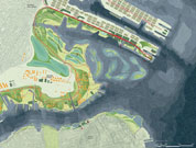 日落公園、灣脊、斯塔頓島地區(qū)在由維拉查諾海峽大橋所體現(xiàn)的更早的基礎(chǔ)設(shè)施上,這個項目模糊了海陸的界限,將城市擴張到水中,適宜居住的水上平臺(在它們上面有一個懸浮的住房)為穿過港口的區(qū)域提供了一個新的渡運網(wǎng)絡(luò)聯(lián)系系統(tǒng)。一系列人造群島通過可充氣的風(fēng)暴阻隔來促進淤泥堆積,從而增強那些天然群島的適應(yīng)力,以便對抗風(fēng)暴及加強南部現(xiàn)存的風(fēng)暴壁壘。[詳細] |